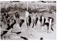 ersten Bauarbeiten wurden mit Hacke, Spaten und Schaufel, sowie Karren